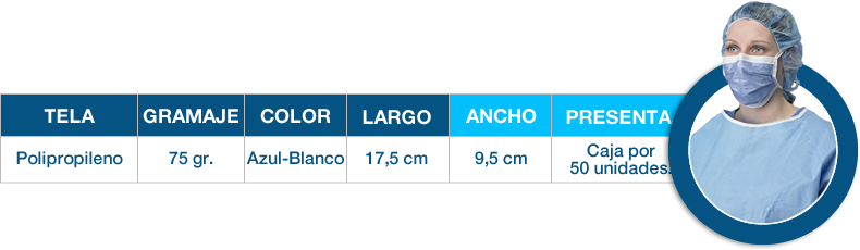 CONCEPTO: Mascarilla desechable, elaborado en tela no tejida de polipropileno, con elástico de sujeción.